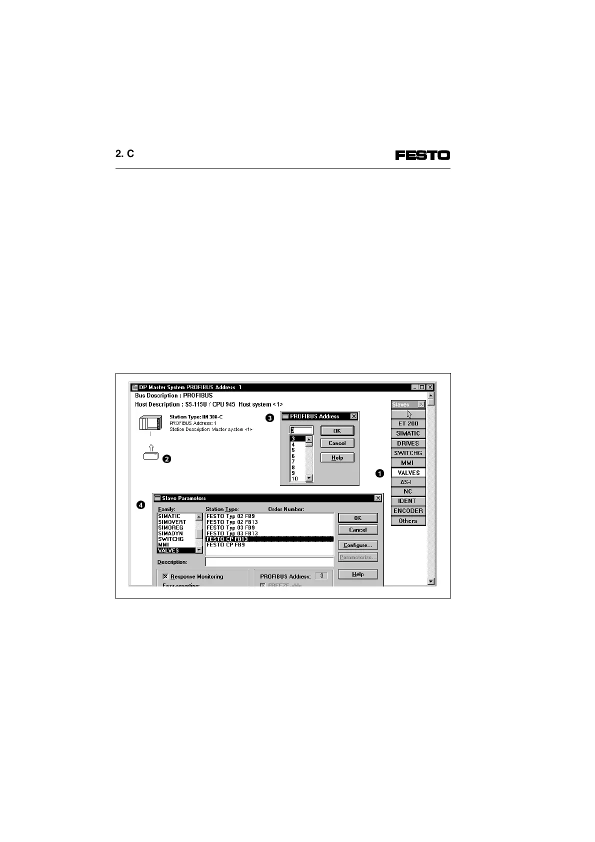 Fig. 2/6: Station selection with COM PROFIBUS