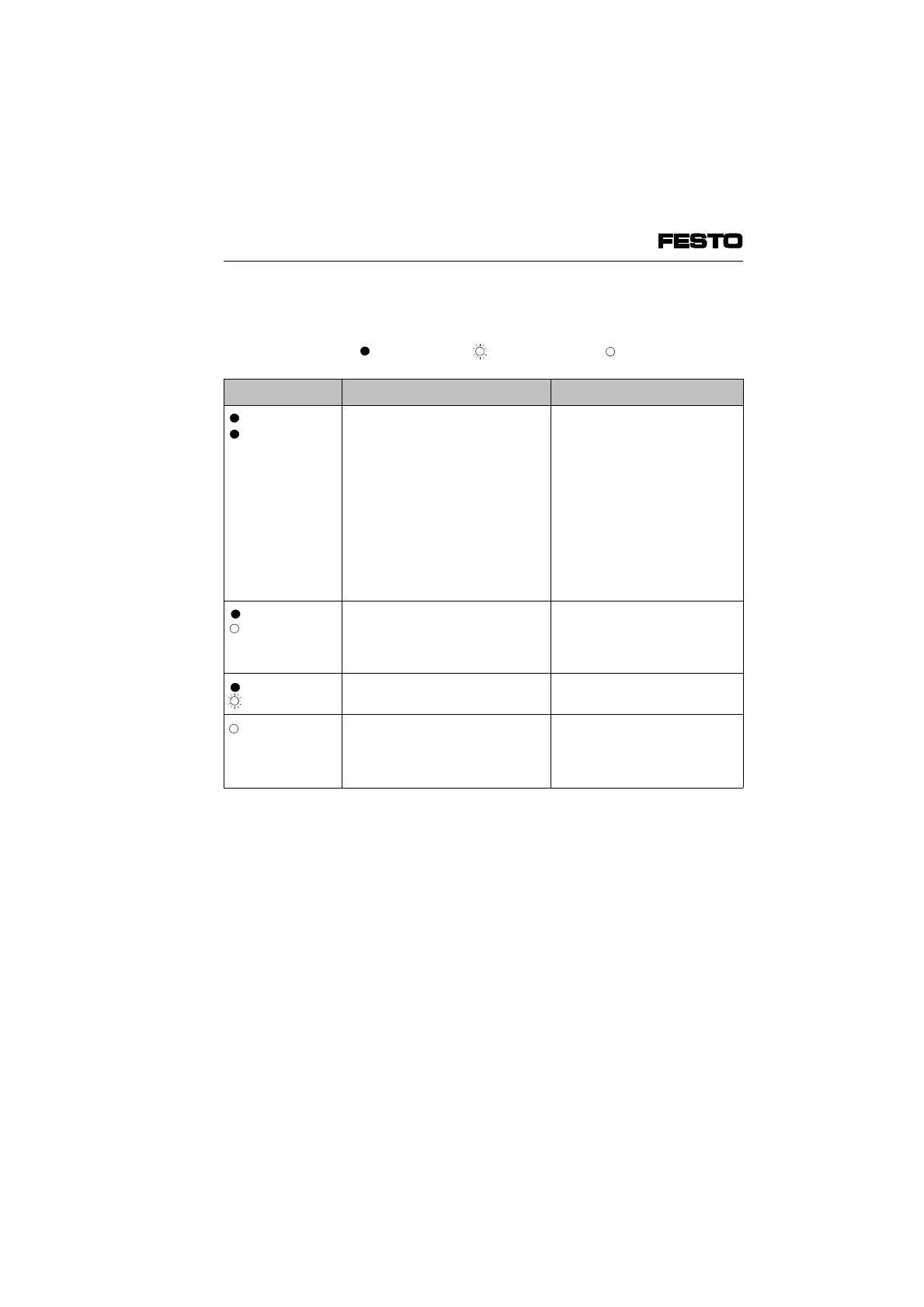 ( = lights up; = LED flashes; = out)