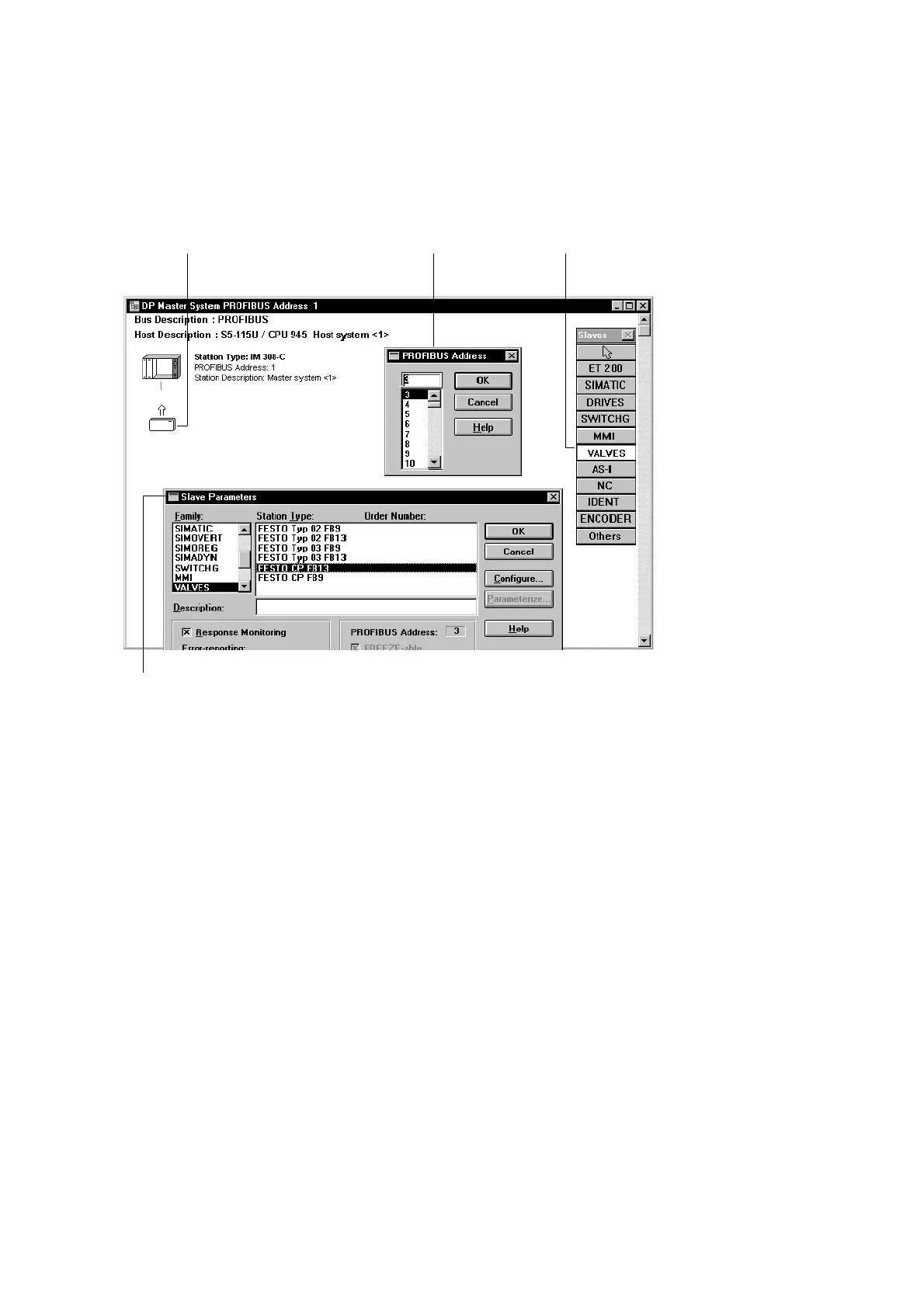 Fig. 2/6: Station selection with COM PROFIBUS 3.x (The masks shown are not all visible