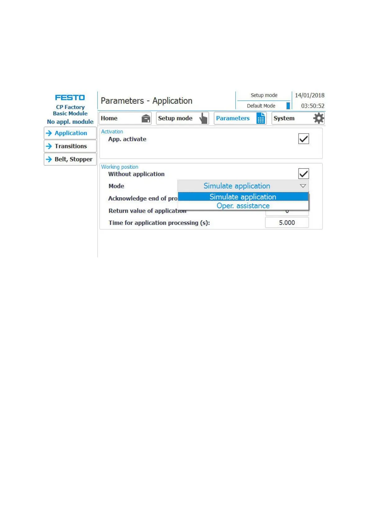 Each free application position, which is not equipped with an application module, can provide a simple