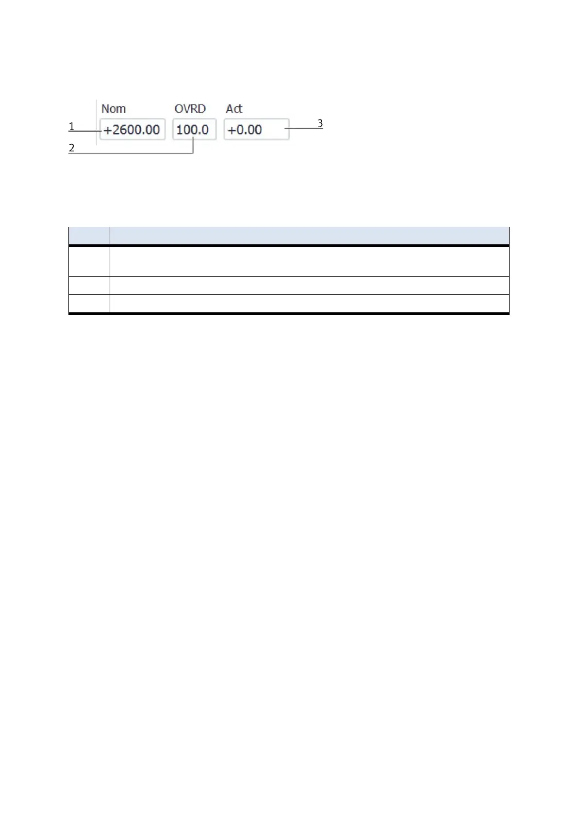 Actual value - display of the current override