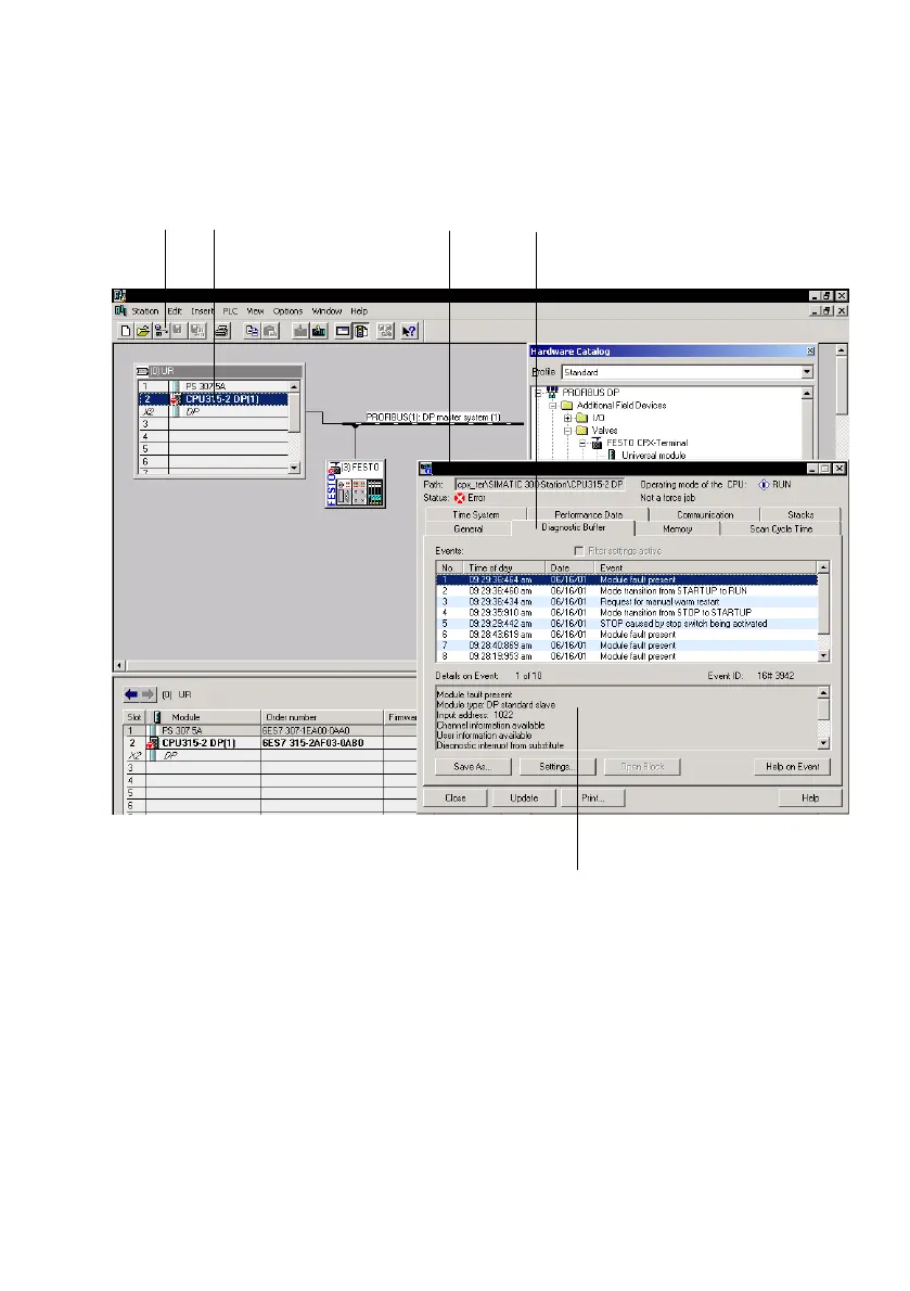 Fig.3/10:Online diagnosis via the diagnostic buffer (explanation see text)
