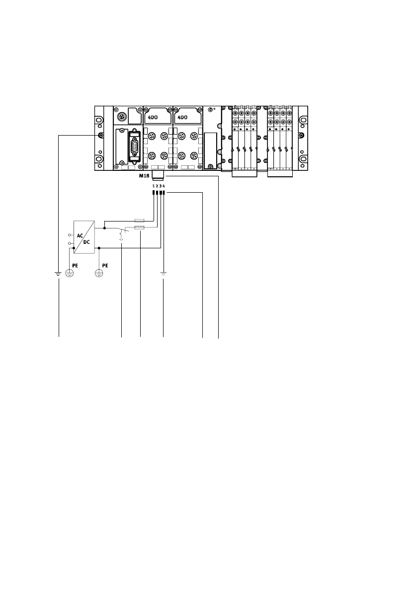 Fig.3/4: Example connecting a common 24V power supply and the potential equalisa