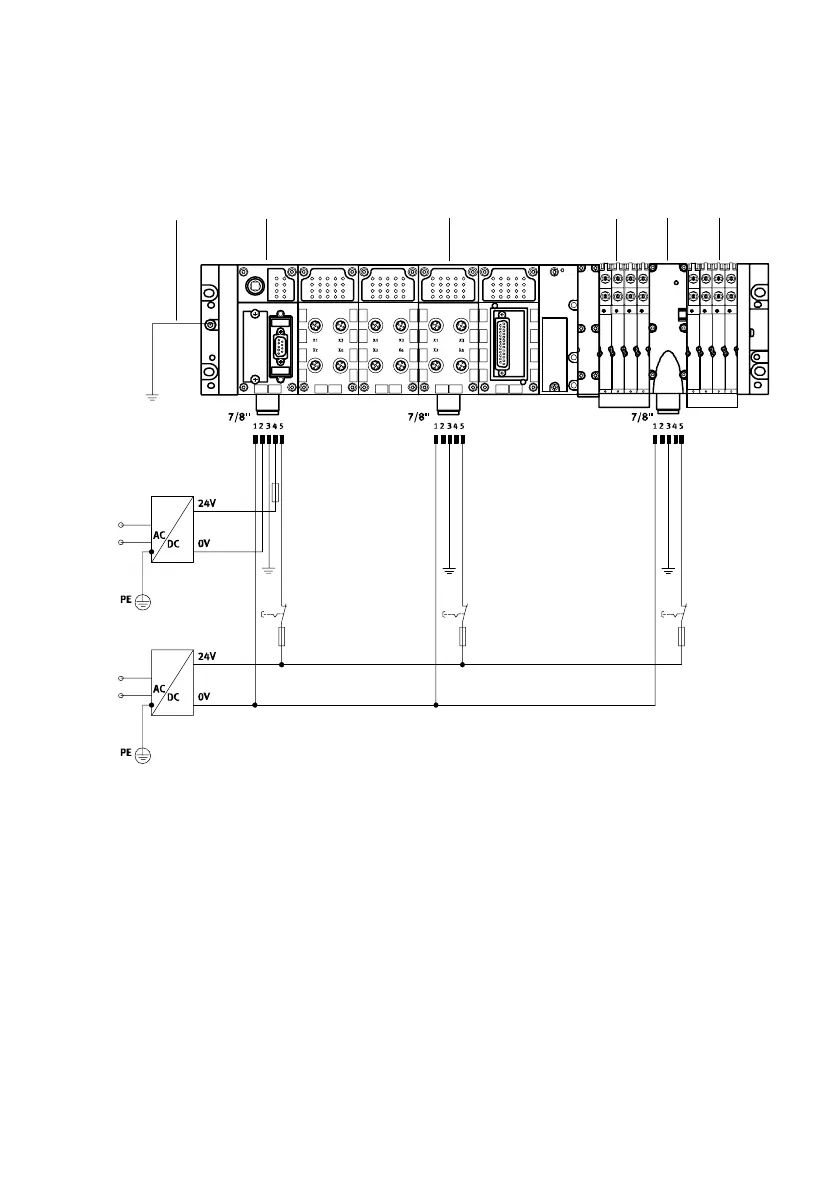 interlinking blocks with 5−pin 7/8" plugs (basic circuit diagram)