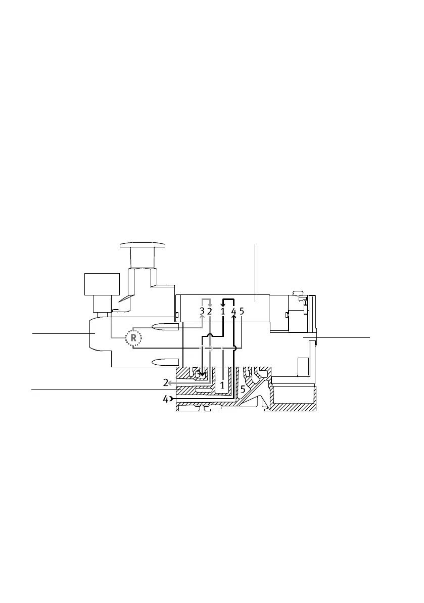 The regulated pressure is switched to channel (2) inside the