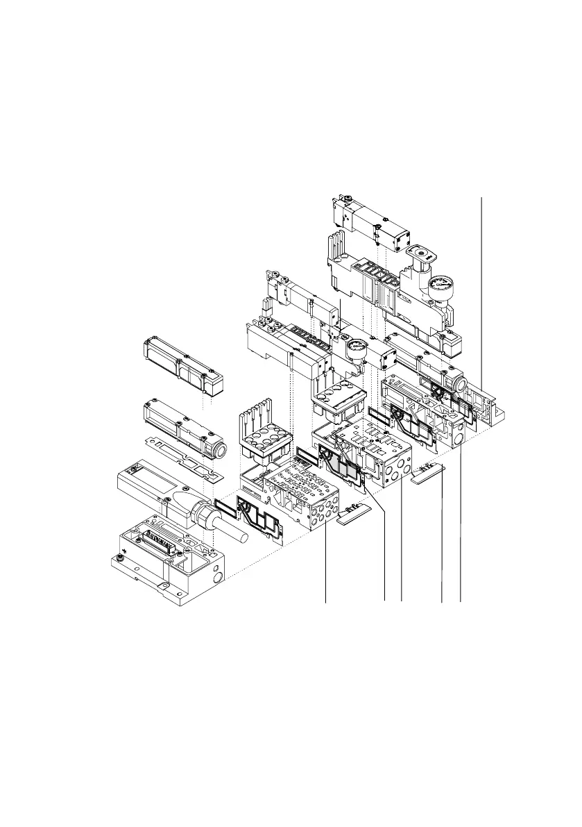 Fig.1/7: Pneumatic components of the MPA−S valve terminal with electric multi−pin or