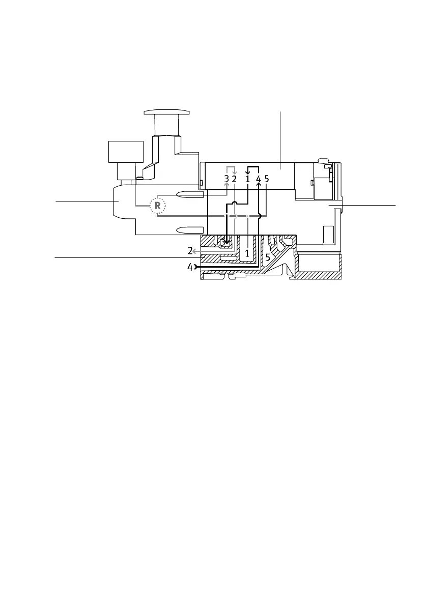 Venting occurs in the valve from working channel (4) to