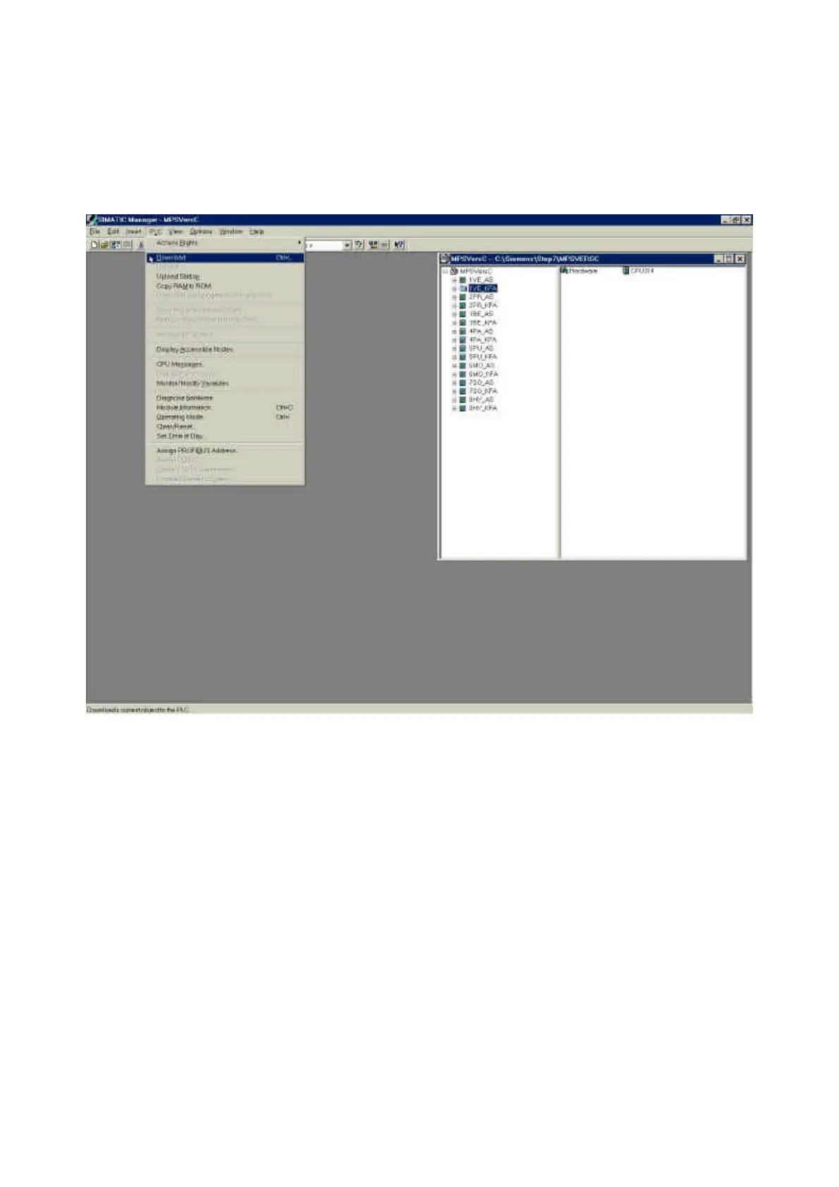 on the screen to download the project – after download is finish, switch the CPU-