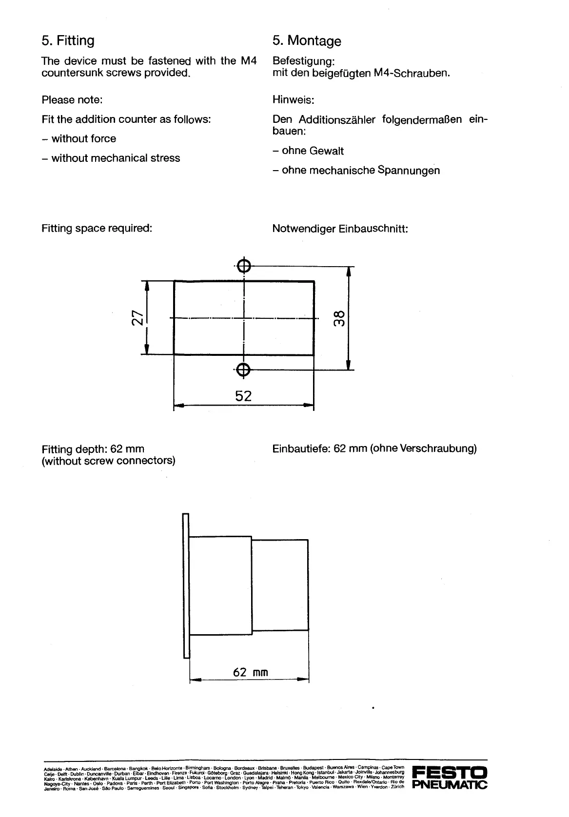 Festo PZA-E-C - Fitting Instructions; Fitting Space Requirements; Fitting Depth