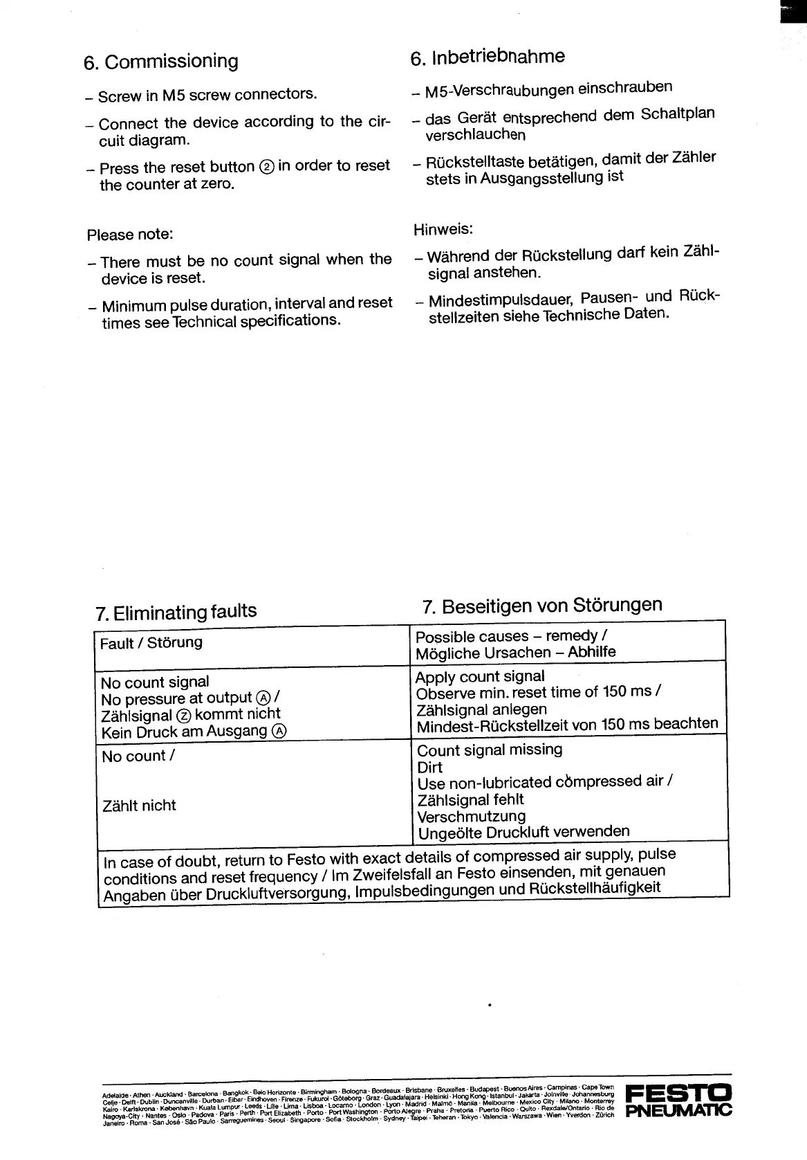 Festo PZA-E-C - Commissioning Procedures; Commissioning Notes; Fault Elimination