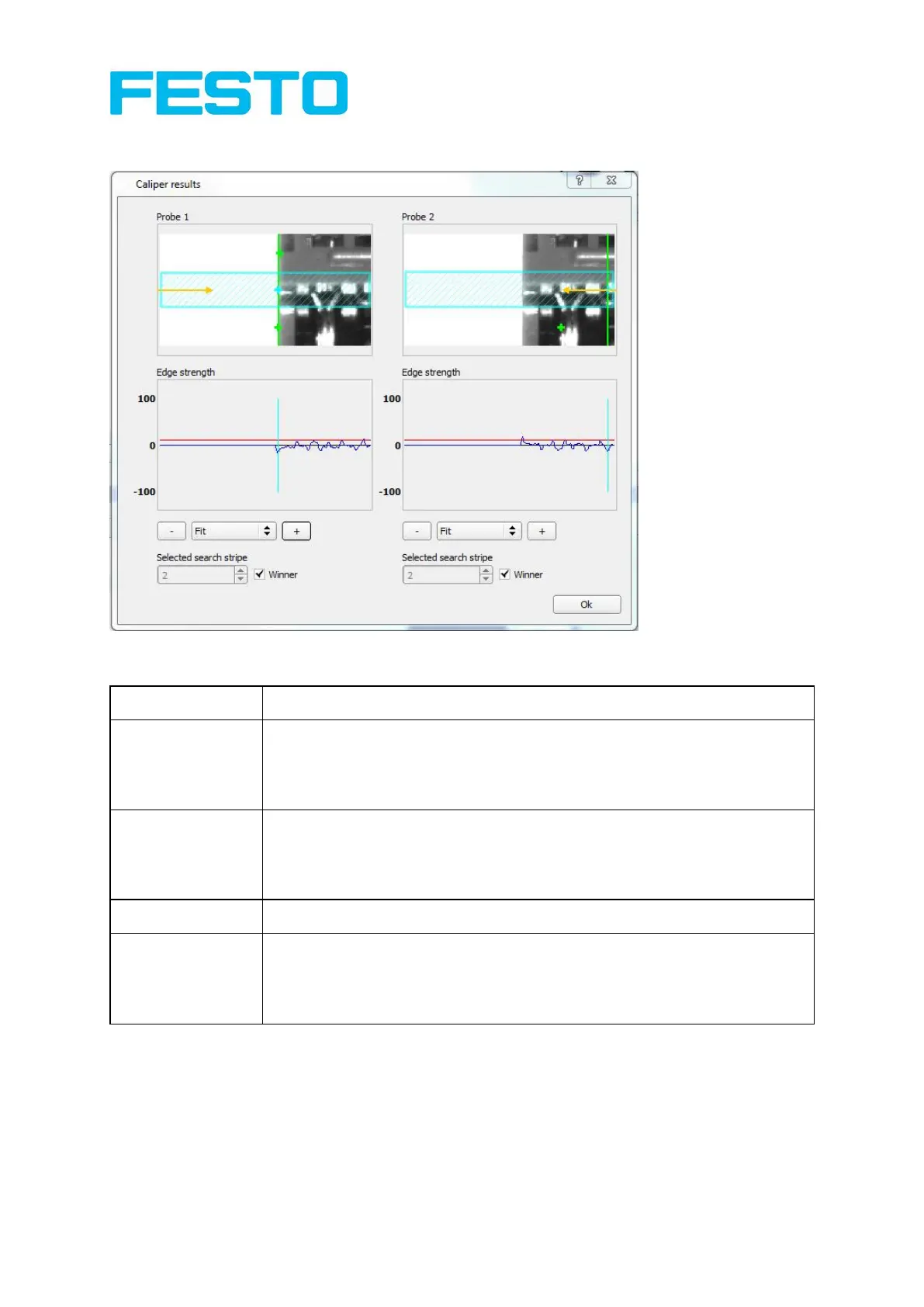 - Light blue line: detected edge transition, depending on “Selected search ray”