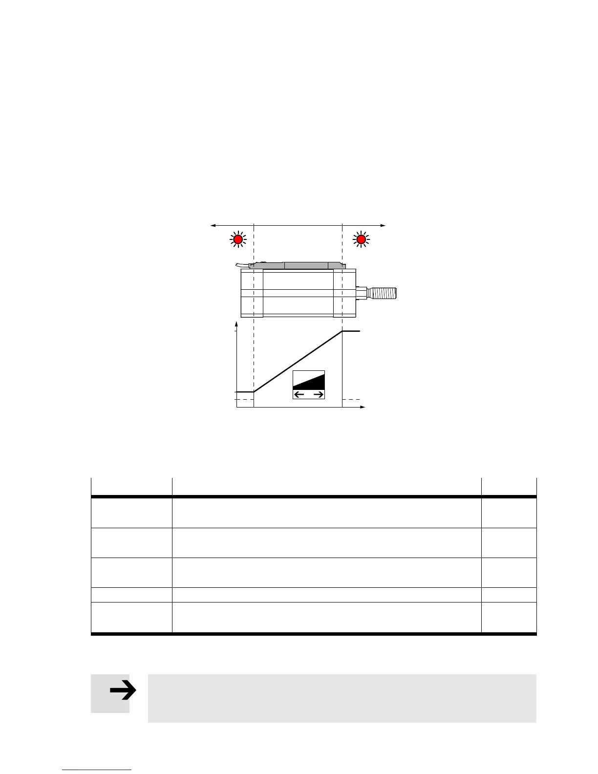 20 mA – the piston has left the sensing range in the direction of the rising