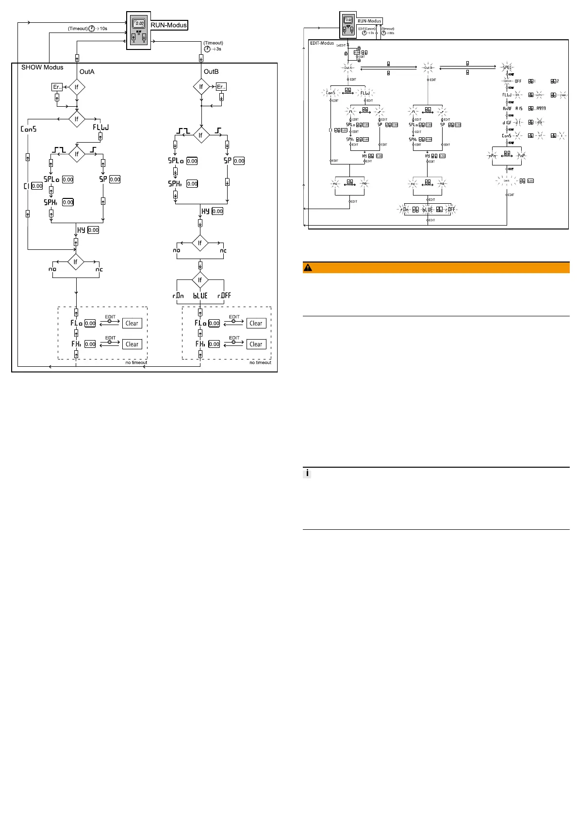 – Colour change of the display from blue to red for flow mode (for OutB)