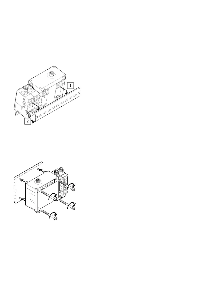 2. Press the H-rail mounting in the direction of the arrow until the mounting slide catches 2.