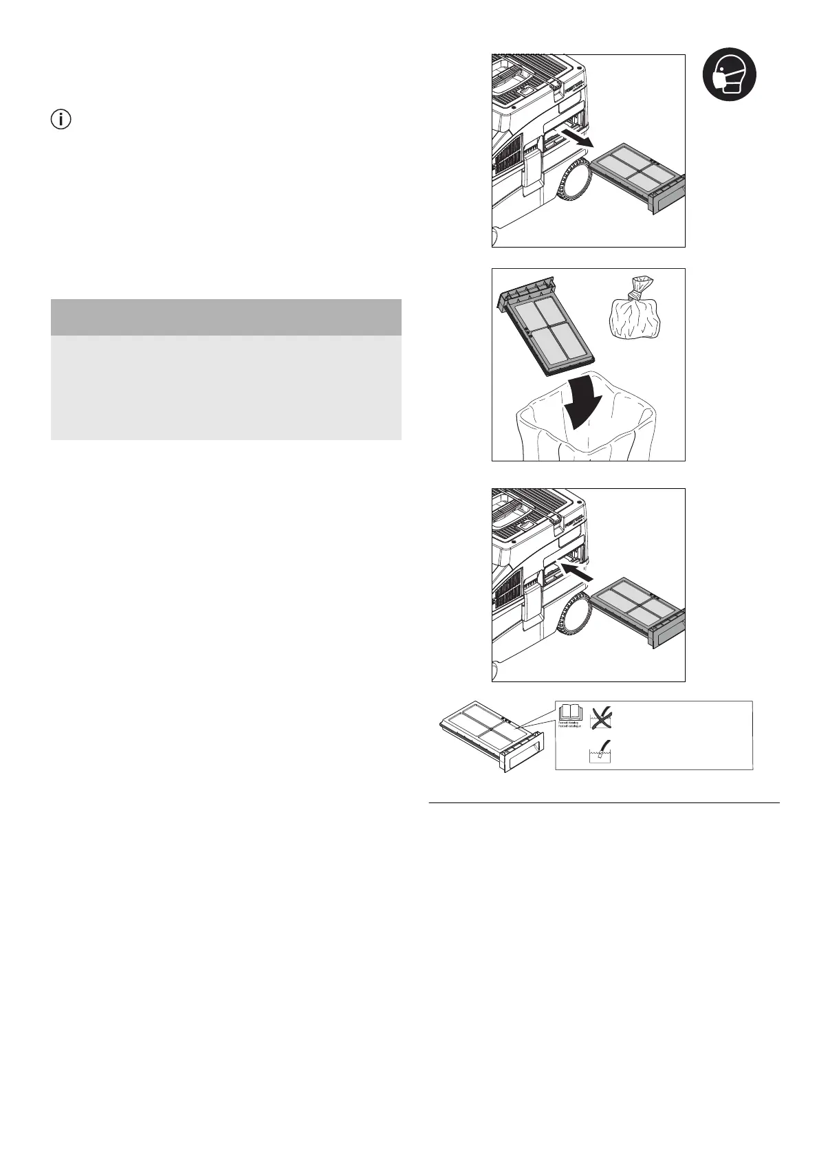 ► Ne jamais utiliser l'aspirateur sans le filtre