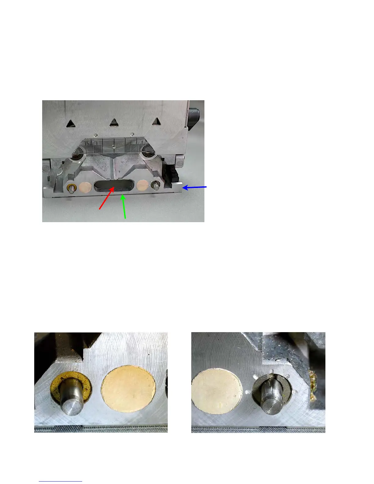 the bottom (red arrow) is where the cutter