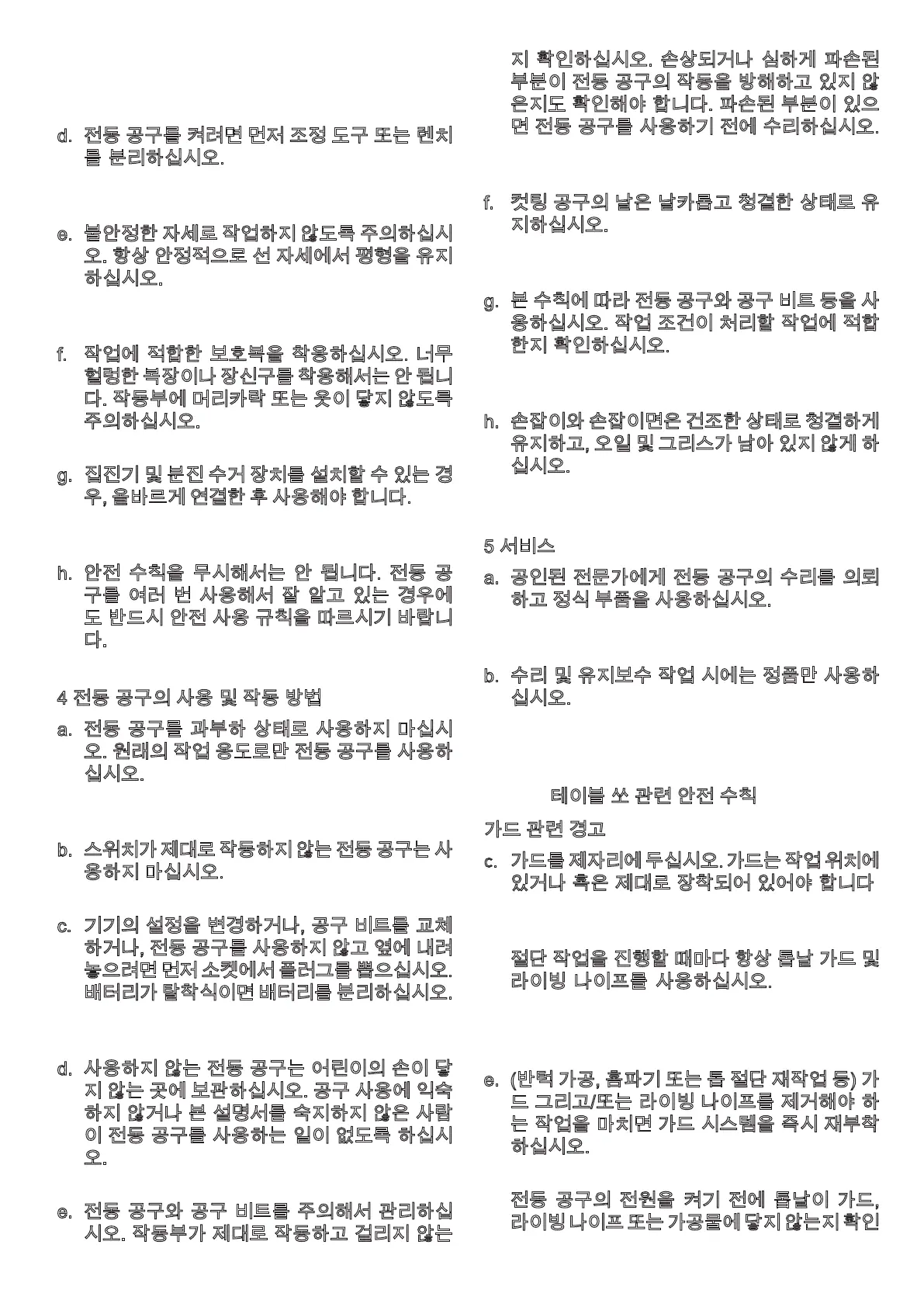 g� 본 수칙에 따라 전동 공구와 공구 비트 등을 사