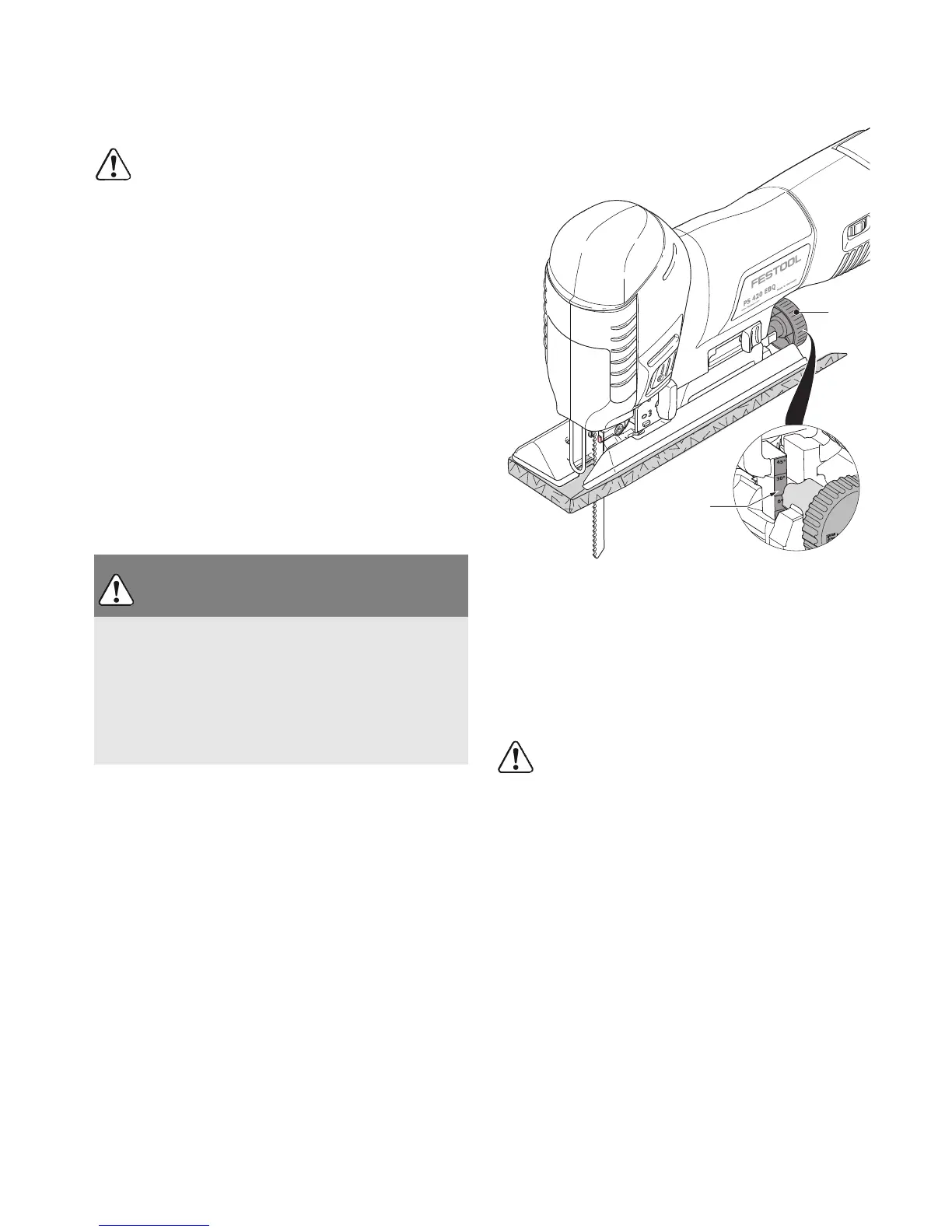 su caladora en el riel de guía Festool, en el compás