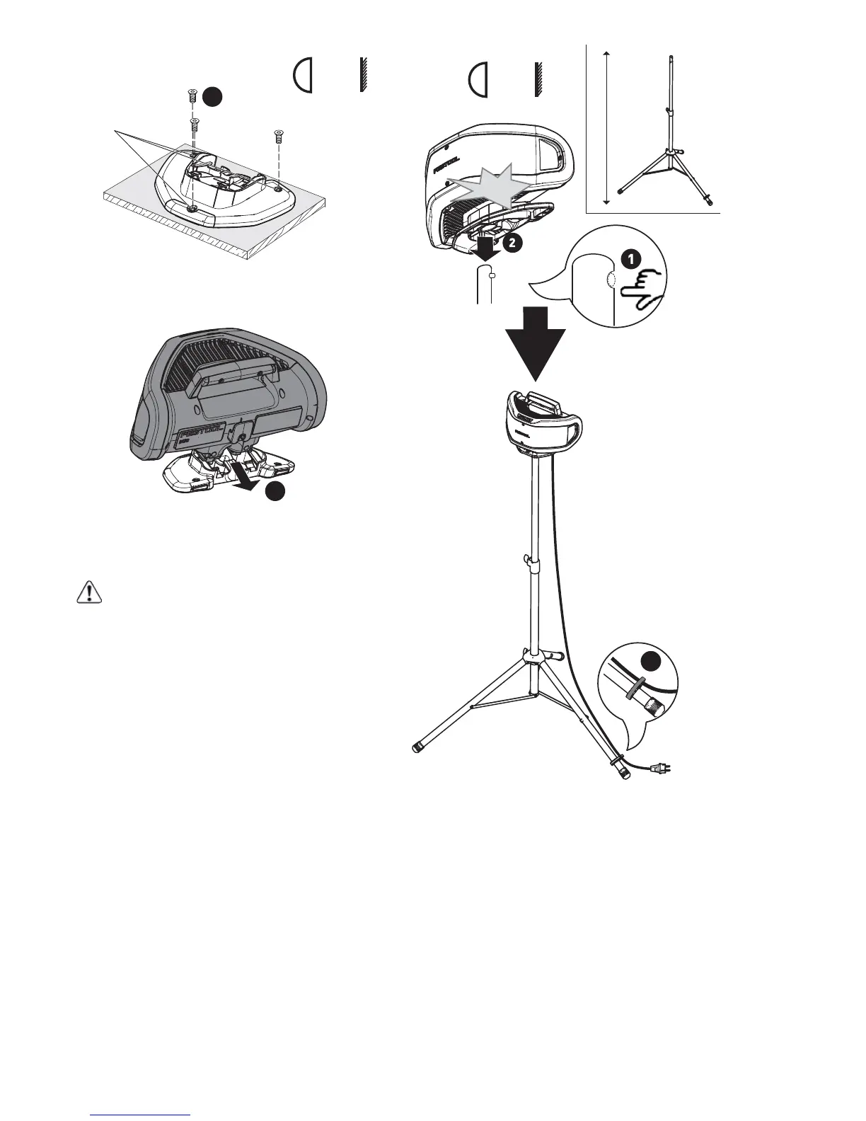 Respecter la notice d'emploi du trépied.