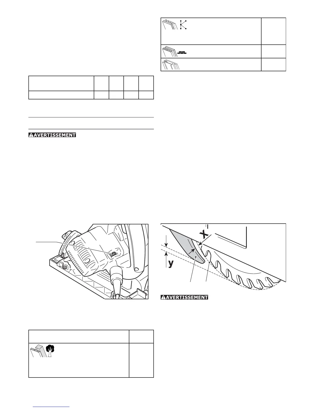 - la lame de scie dépasse l’écarteur de 2 à 4 mm