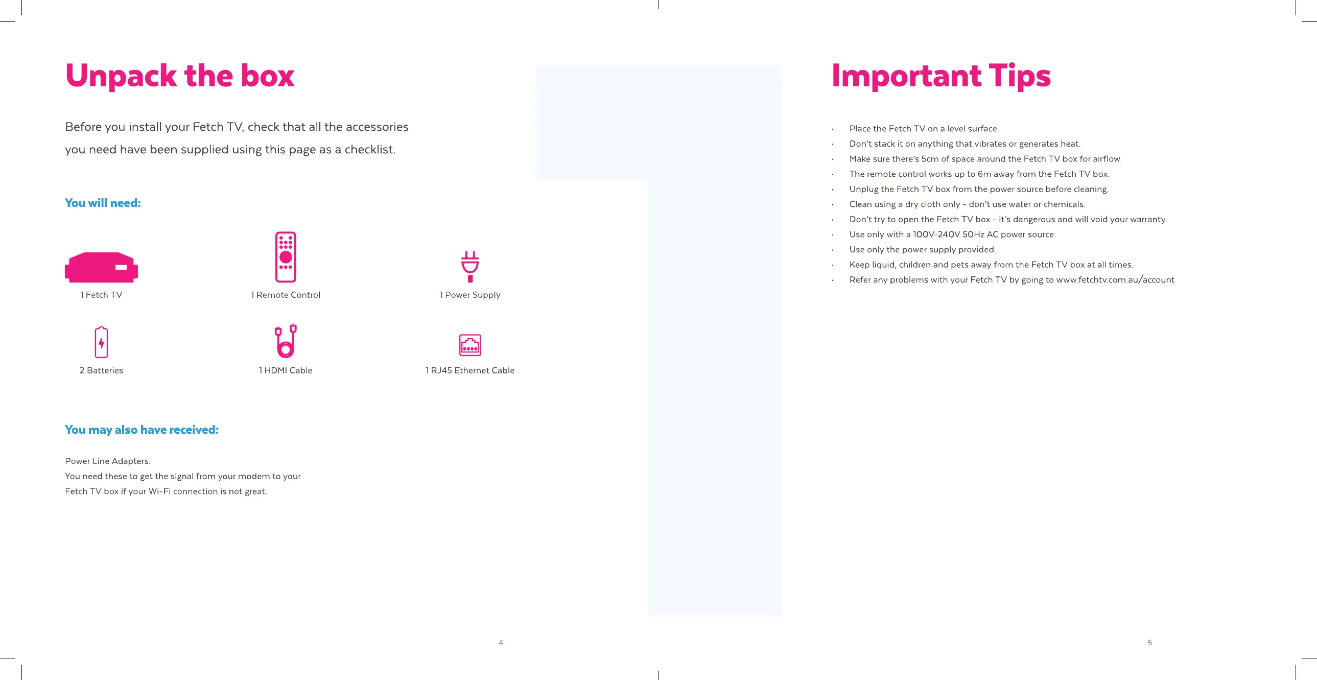 Fetch TV MIGHTY - Unpack the box; Important Tips