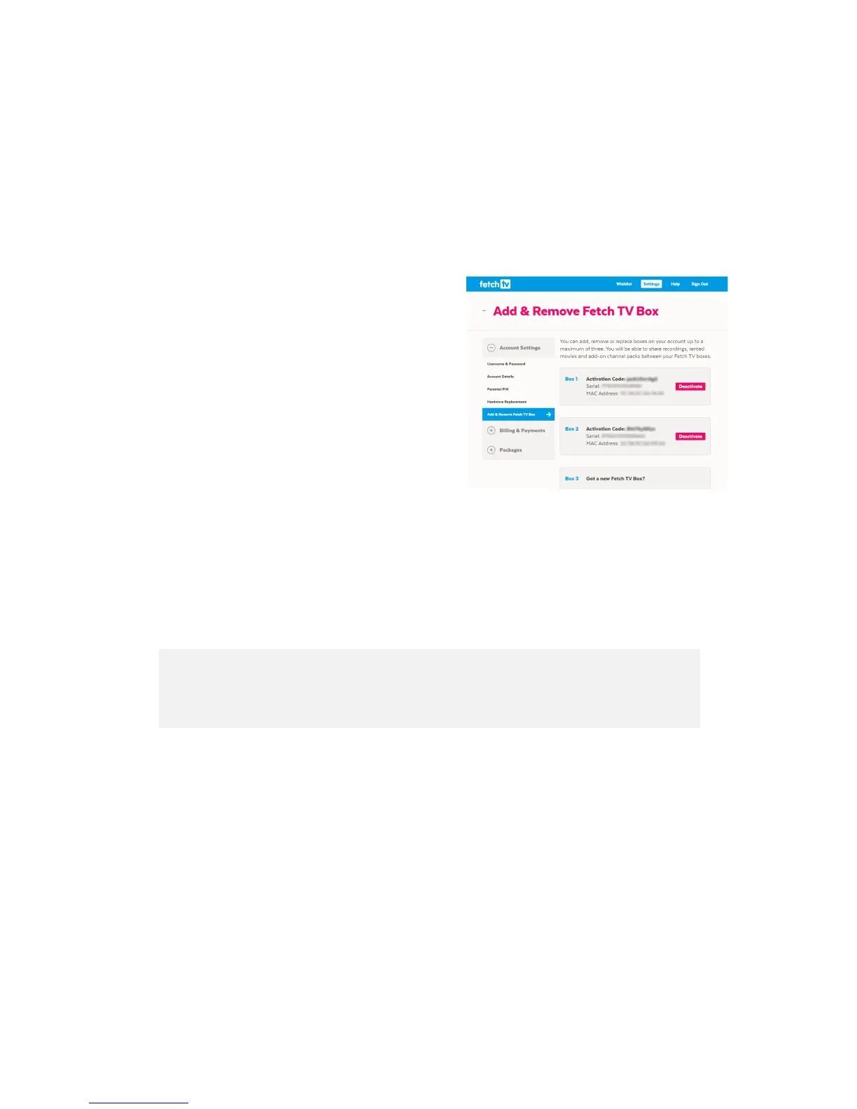 All!Fetch!TV!boxes!you!want!to!use!for!Multiroom!must!be!on!the!same!Fetch!TV!account.!!