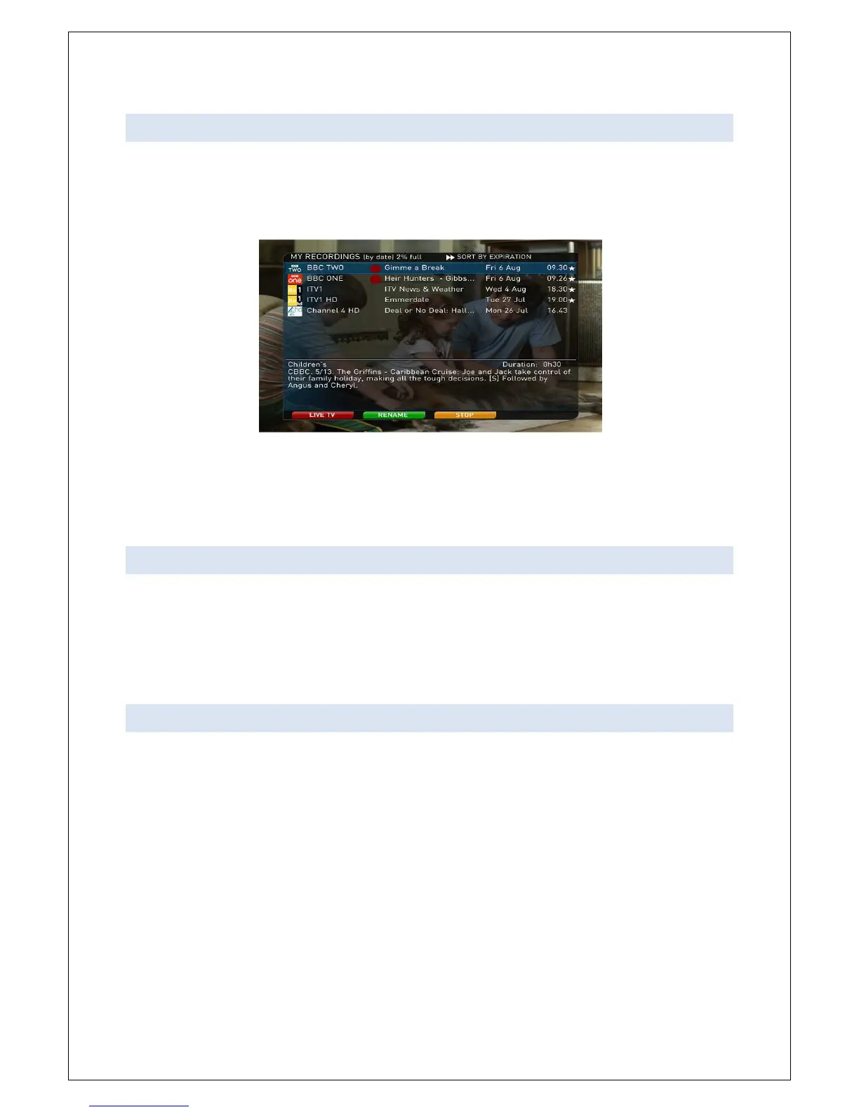 Using the remote control, scroll to MY RECORDINGS and press OK