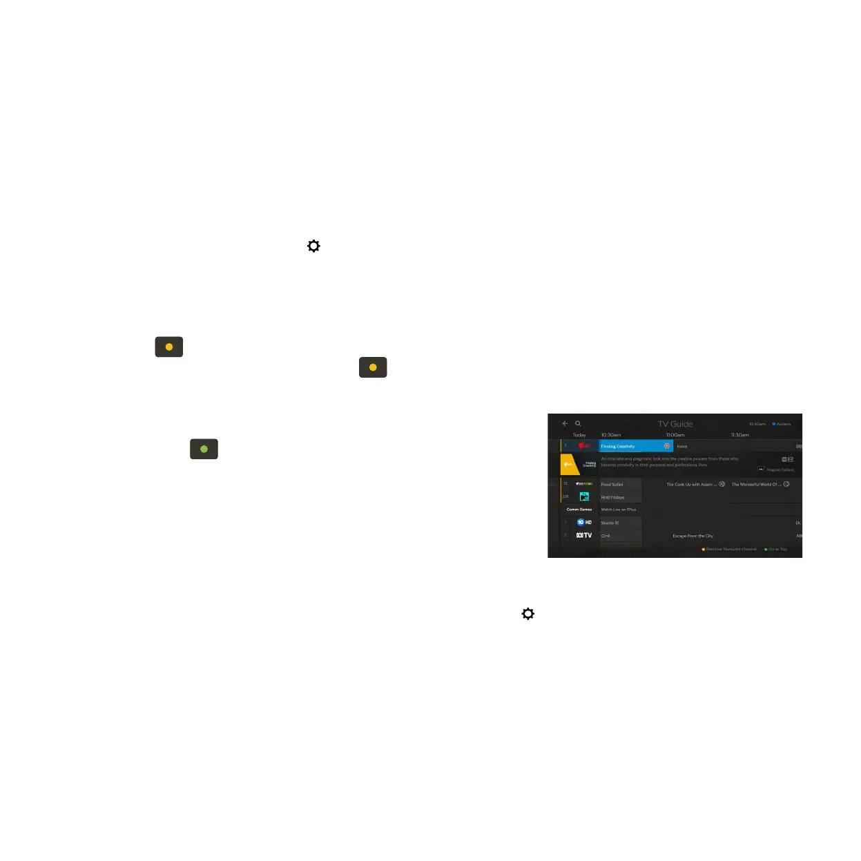 Favourites let you set up your TV Guide to group your favourite channels at the top of the guide, so you can