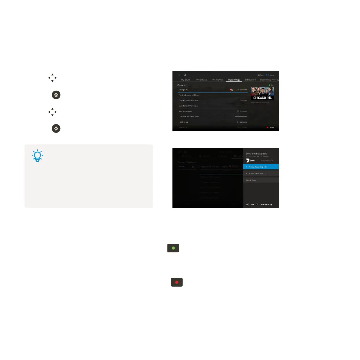 want to keep in your recordings list and delete them by pressing . To change the season option, see Page 21,