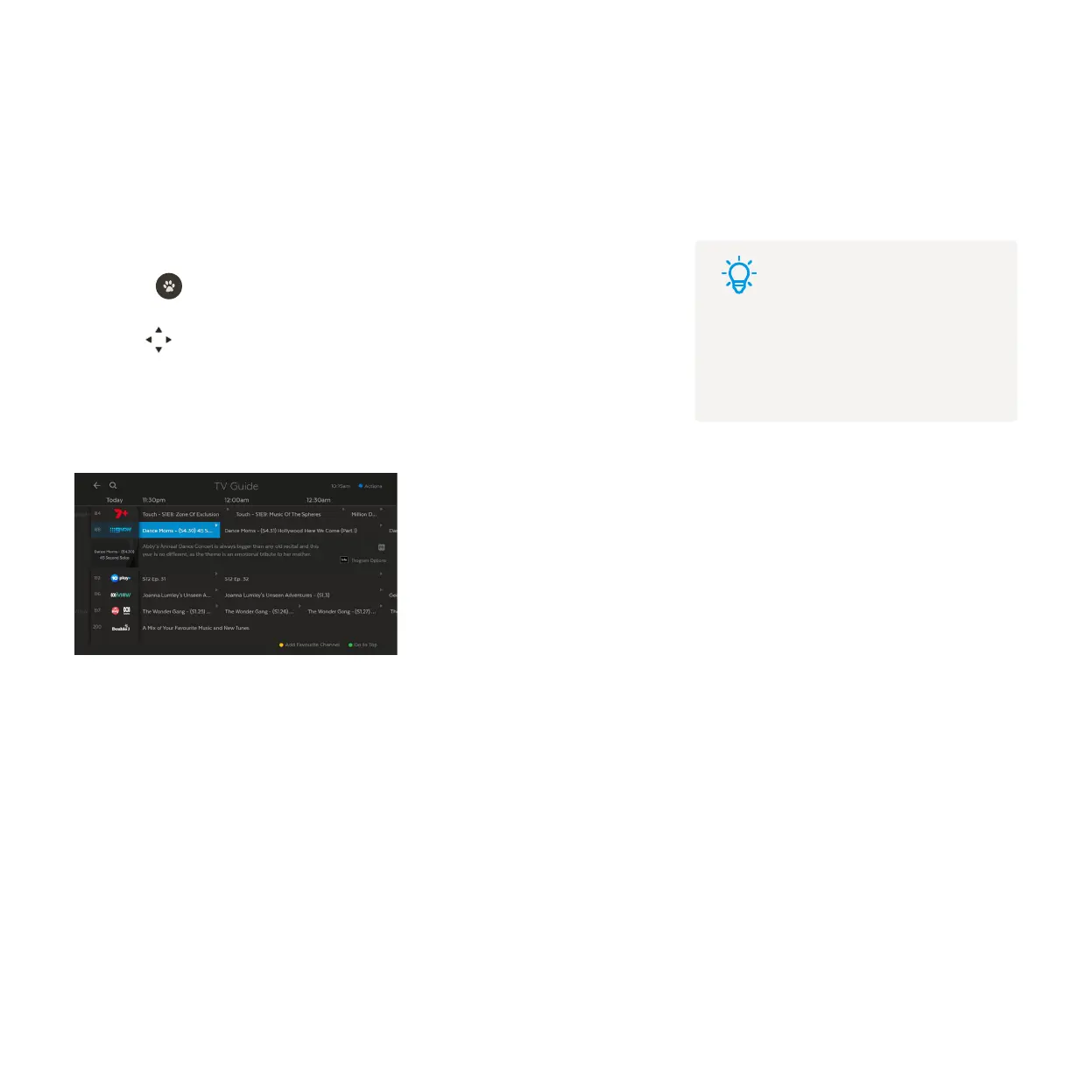 Use to navigate down to the TV Apps channels in the guide at channel 180