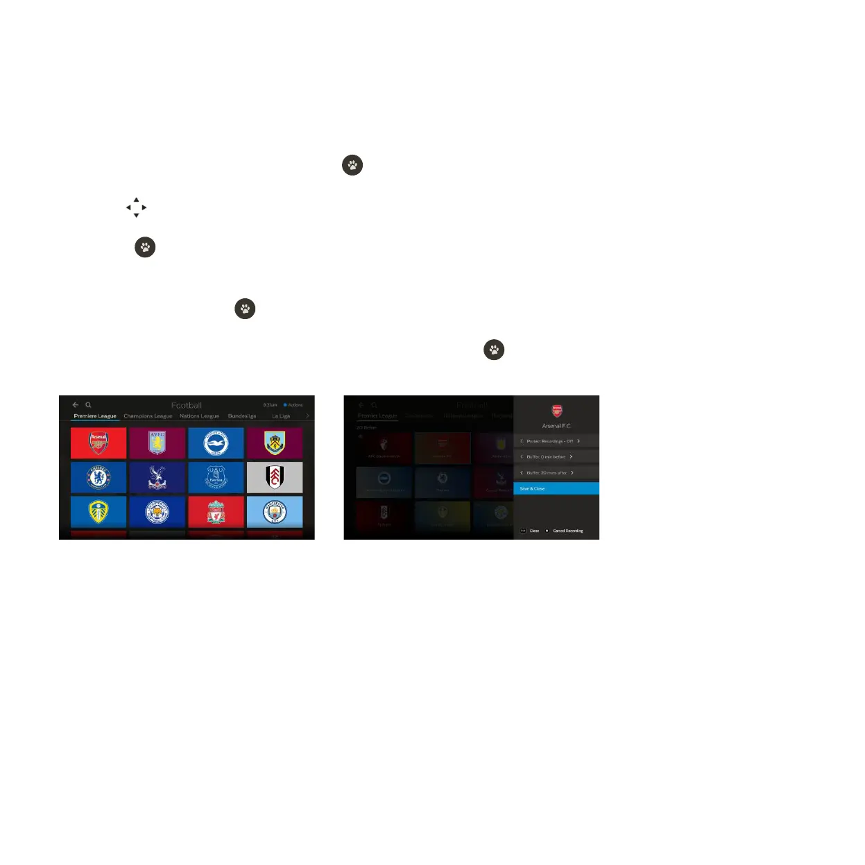 Use to scroll down to the Team Recordings carousel and browse sport categories.