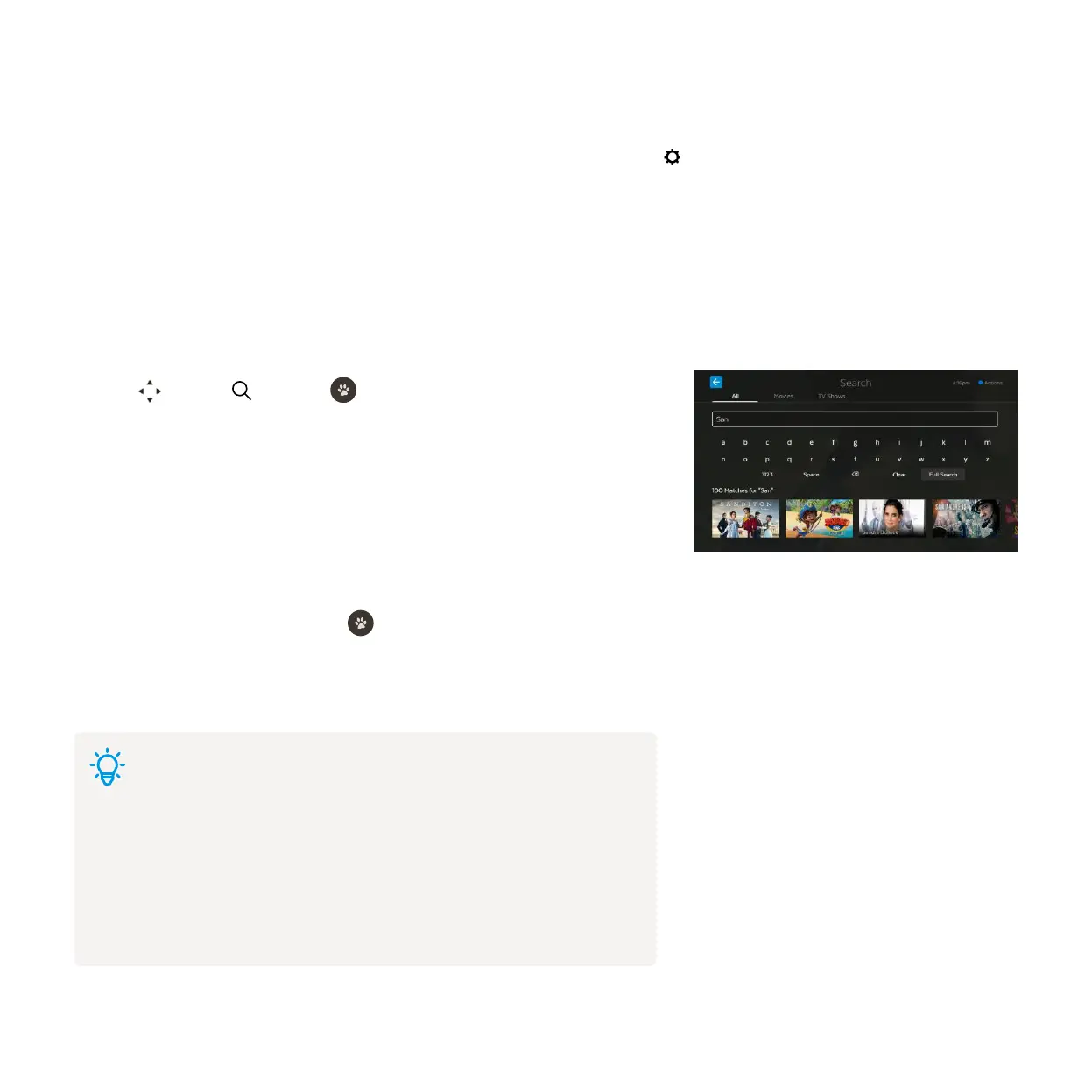 You can easily search for things to watch by keyword from the program name, synopsis, or cast and crew. Search covers