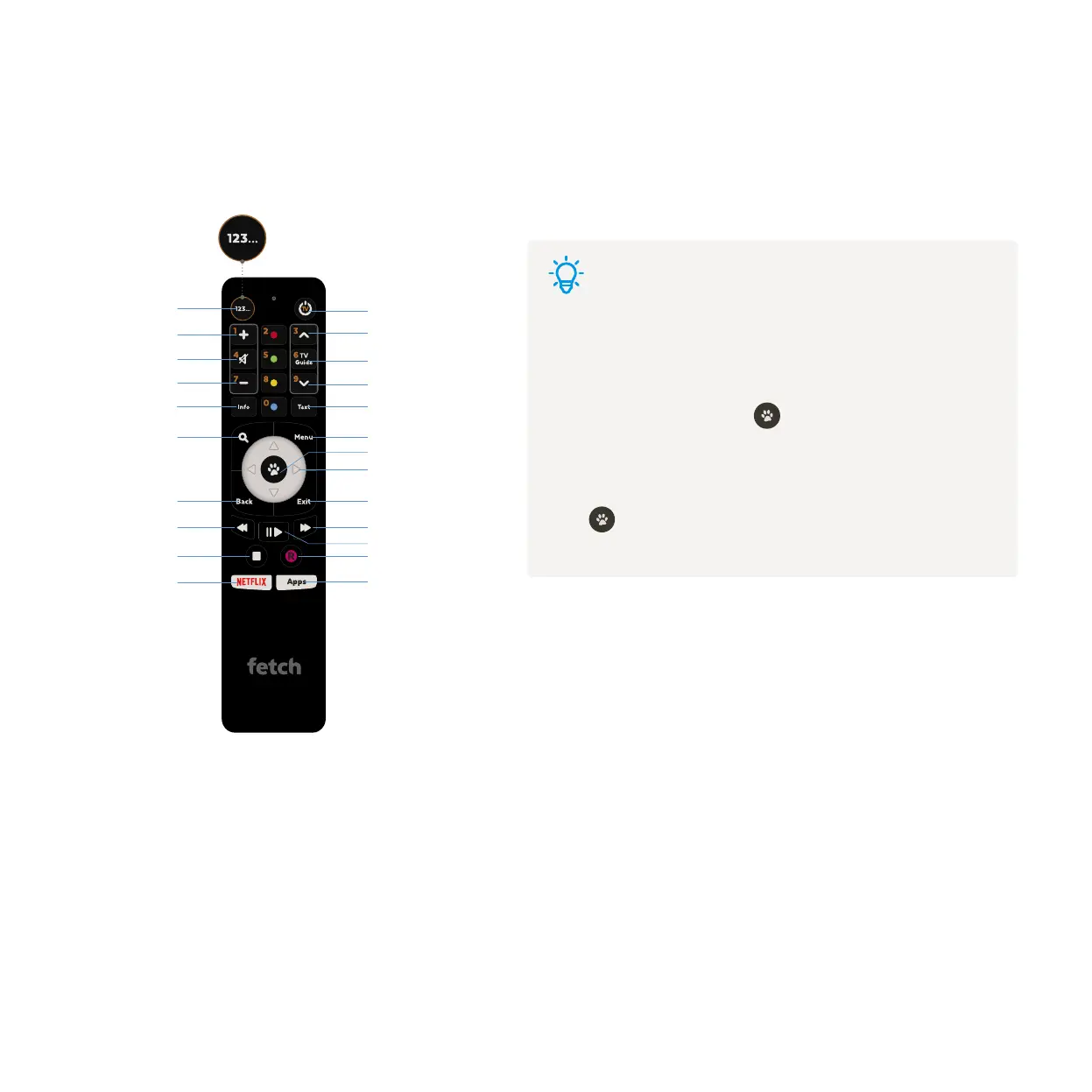 The remote control brings Fetch to life. It has all the functions you need for quick and easy viewing.