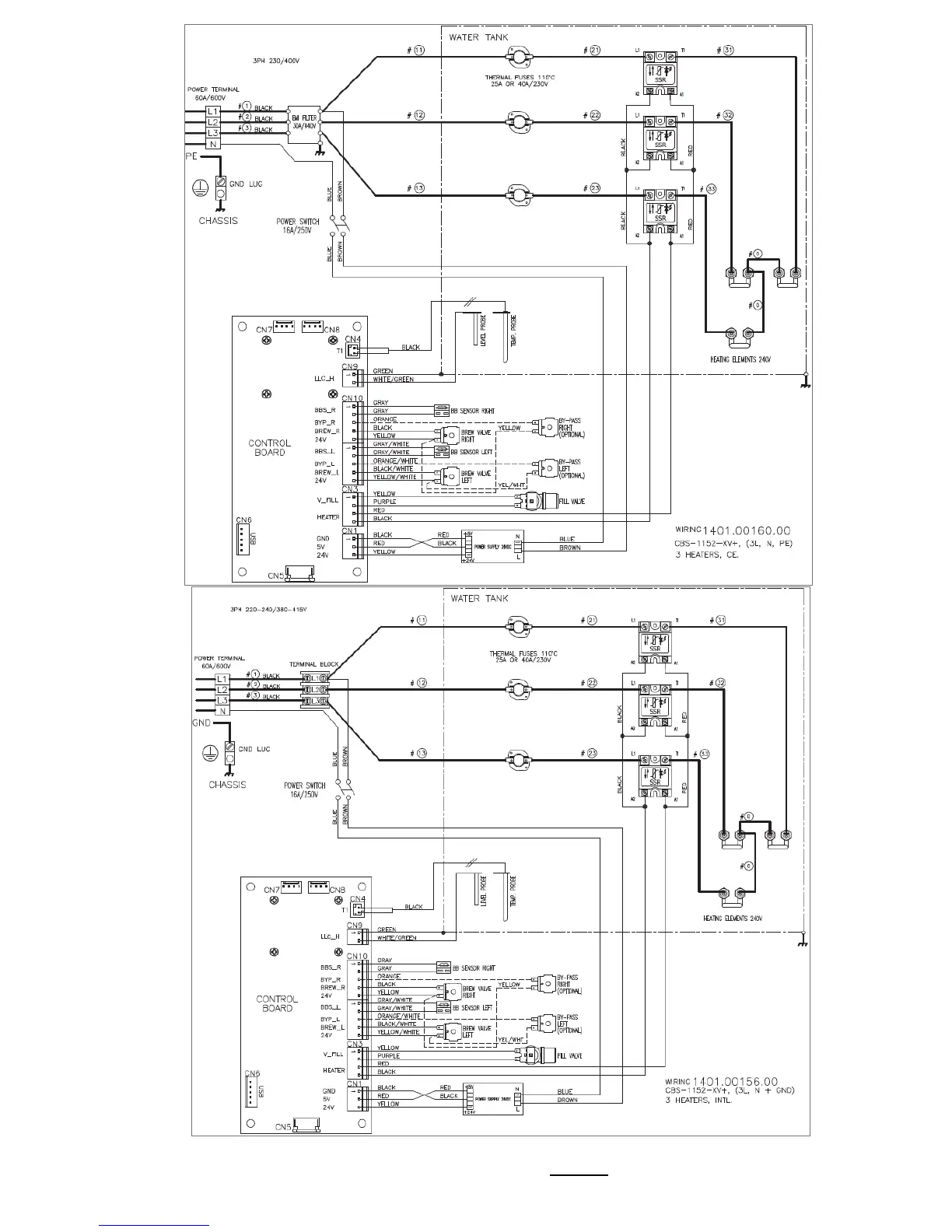 Fetco CBS-1150 EXTRACTOR V+ - CBS-1152 XV+ Wiring Configurations