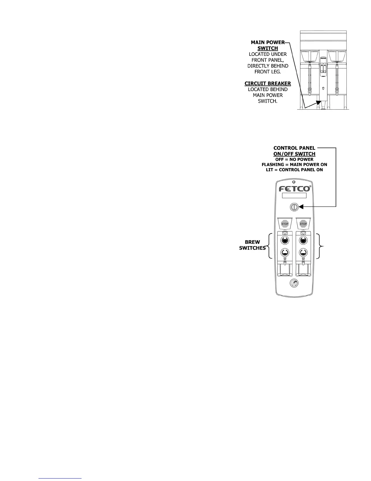 front leg of the brewer. The control panel on/off switch will begin