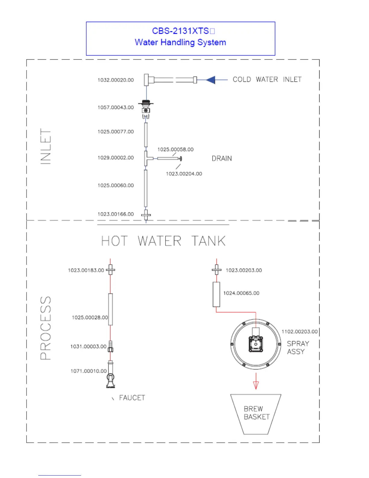 Fetco CBS-2131XTS - CBS-2132 XTS Water Handling System Diagram; Inlet Water Flow Path; Process Water Flow Path