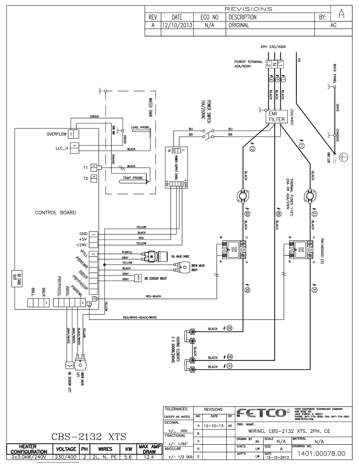 Fetco CBS-2131XTS - CBS-2132 XTS Wiring Diagram Details; Heater Configuration Wiring