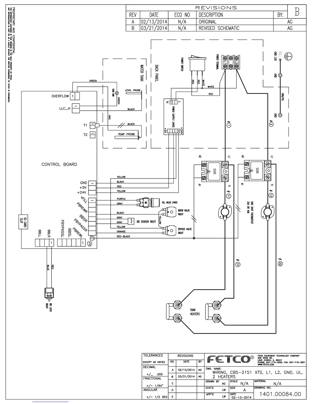 Fetco CBS-2152XTS - CBS-2151 XTS UL 2 Heater Wiring Diagram; Wiring Schematics for UL 2 Heaters