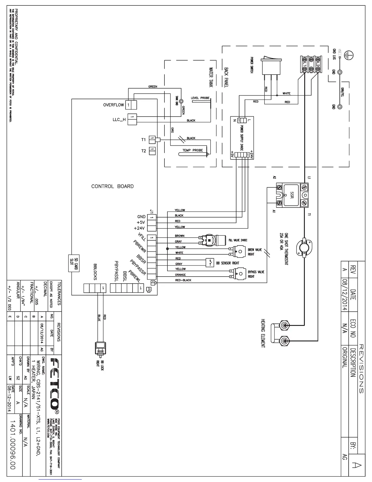 Fetco CBS-2152XTS - CBS-2141;51 XTS Japan 1 Heater Wiring Diagram; Wiring Schematics for Japan 1 Heater