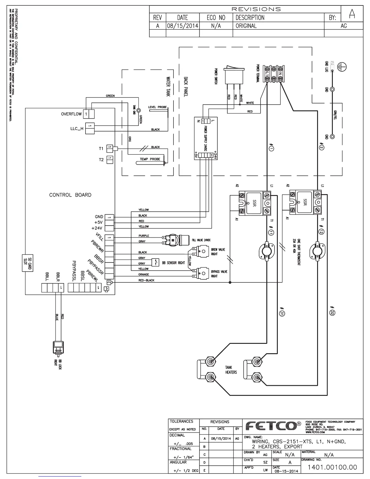 Fetco CBS-2152XTS - CBS-2151 XTS Export 2 Heater Wiring Diagram; Wiring Schematics for Export 2 Heaters