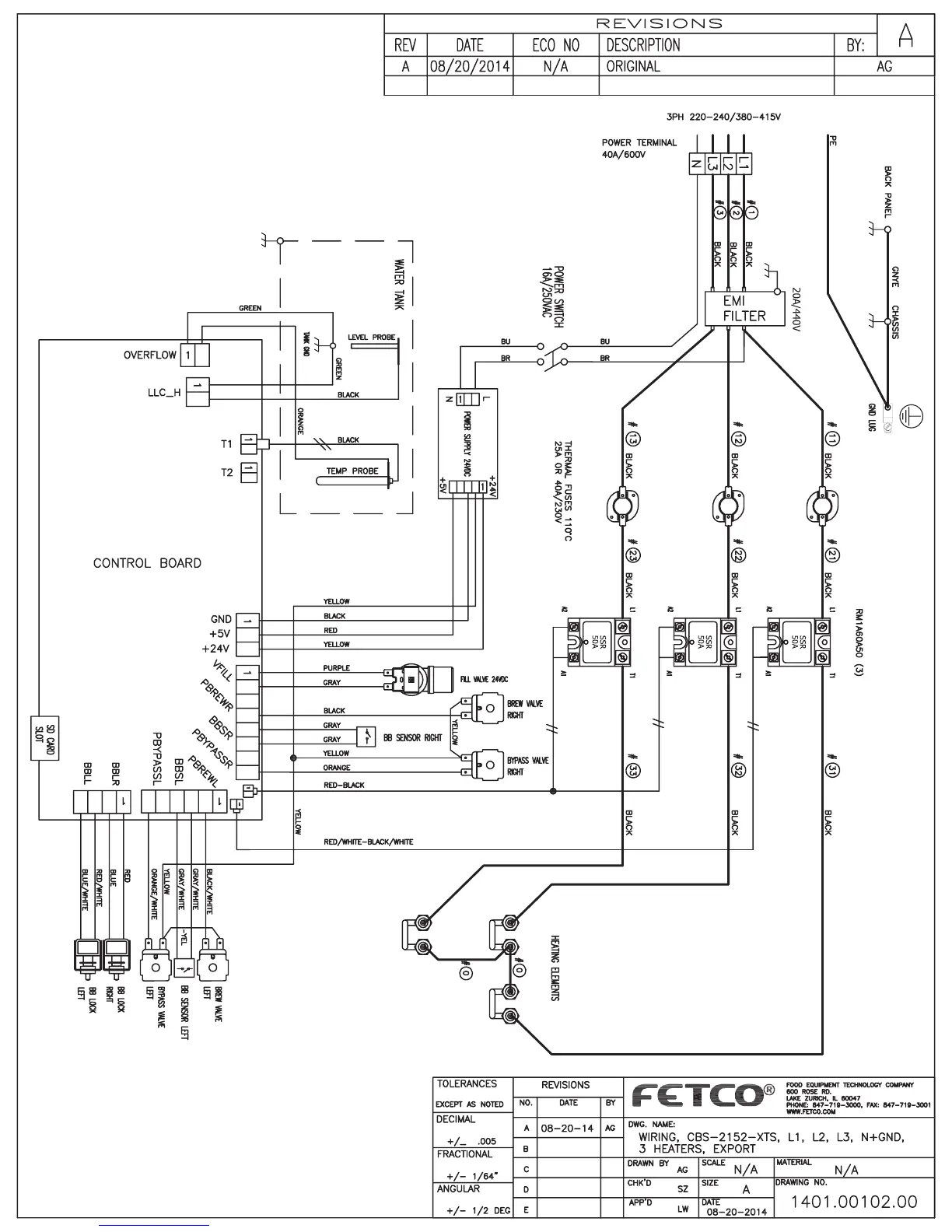 Fetco CBS-2152XTS - CBS-2152 XTS Export 3 Heater Wiring Diagram; Wiring Schematics for Export 3 Heaters