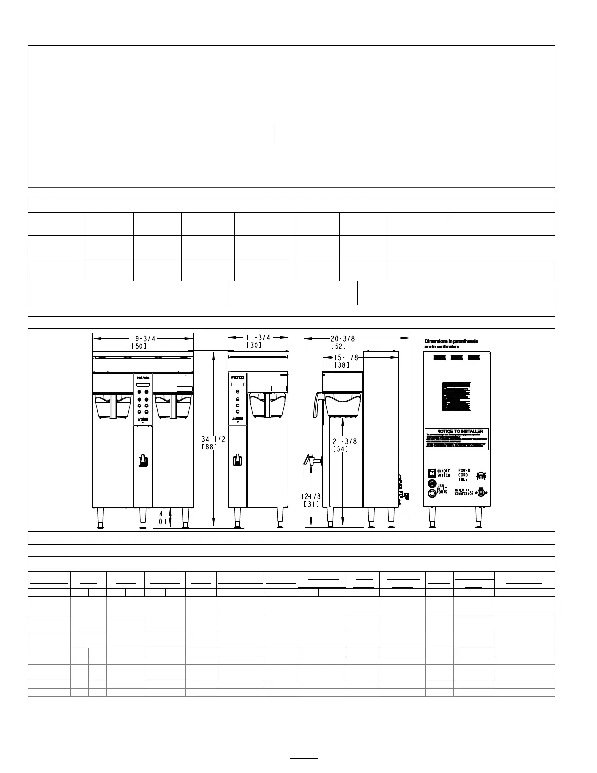 Calibrated for 1.0 gal brew/3.75 L & ¾ gallon per brew Brew Basket 13” X 5” Coffee Filter 13” X 5 or FETCO# F002