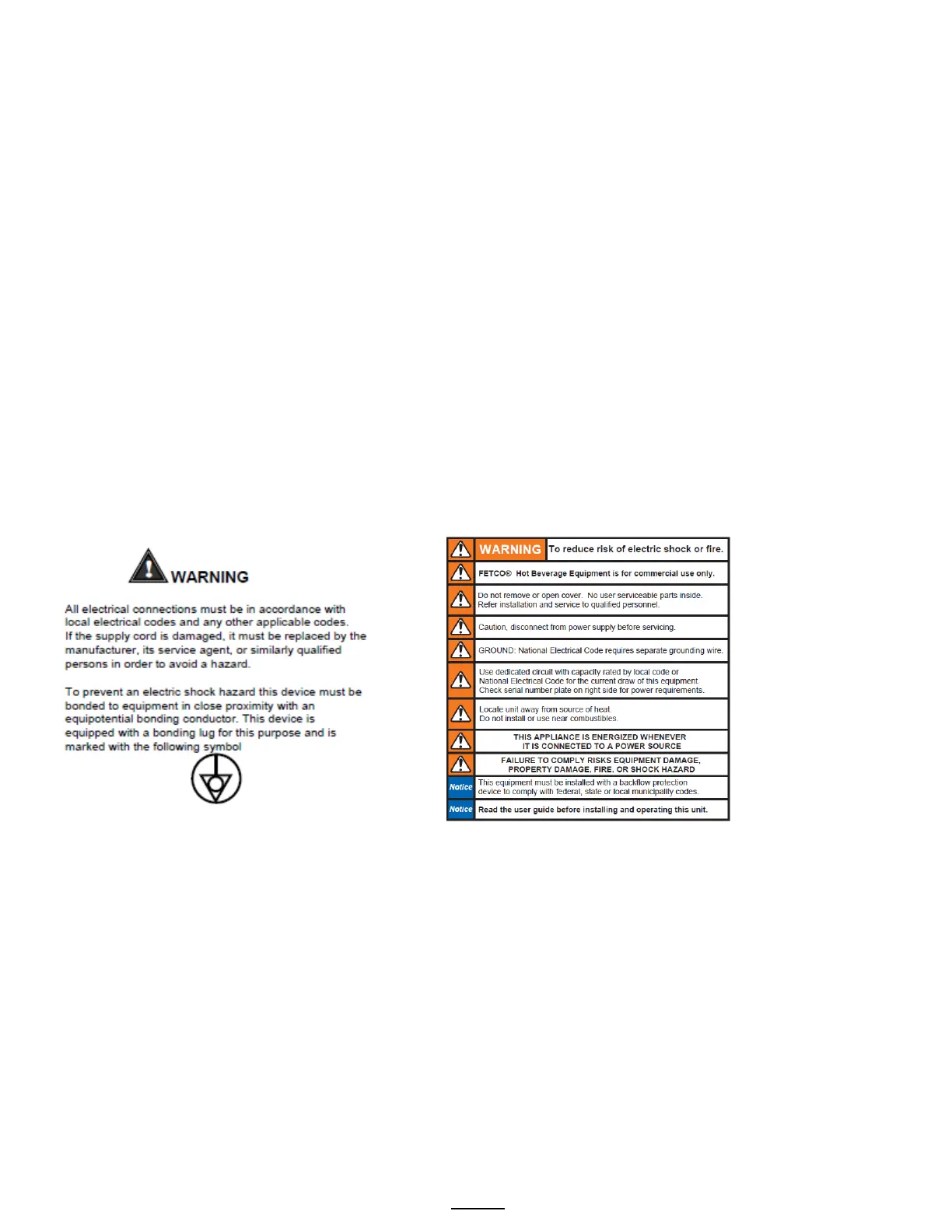 counter or table will support the total weight of the brewer and dispensers when filled (See: Technical Data).