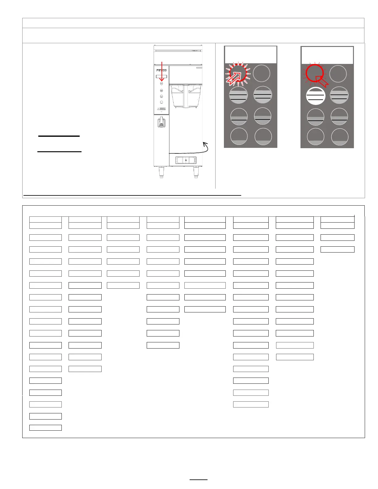 Note: Only the left side buttons of a two sided brewer are used for programming