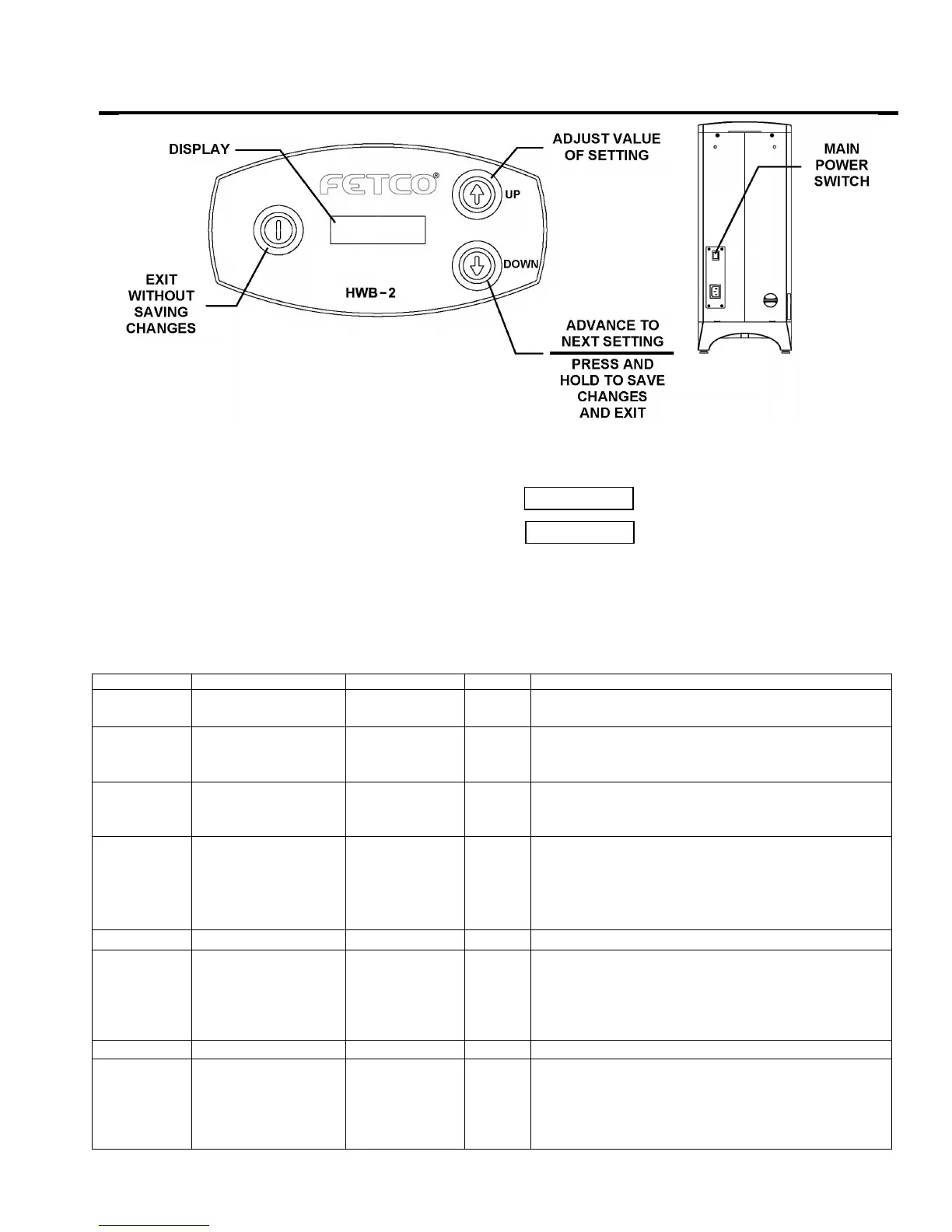 • The POWER switch may be used to exit programming without saving new settings.