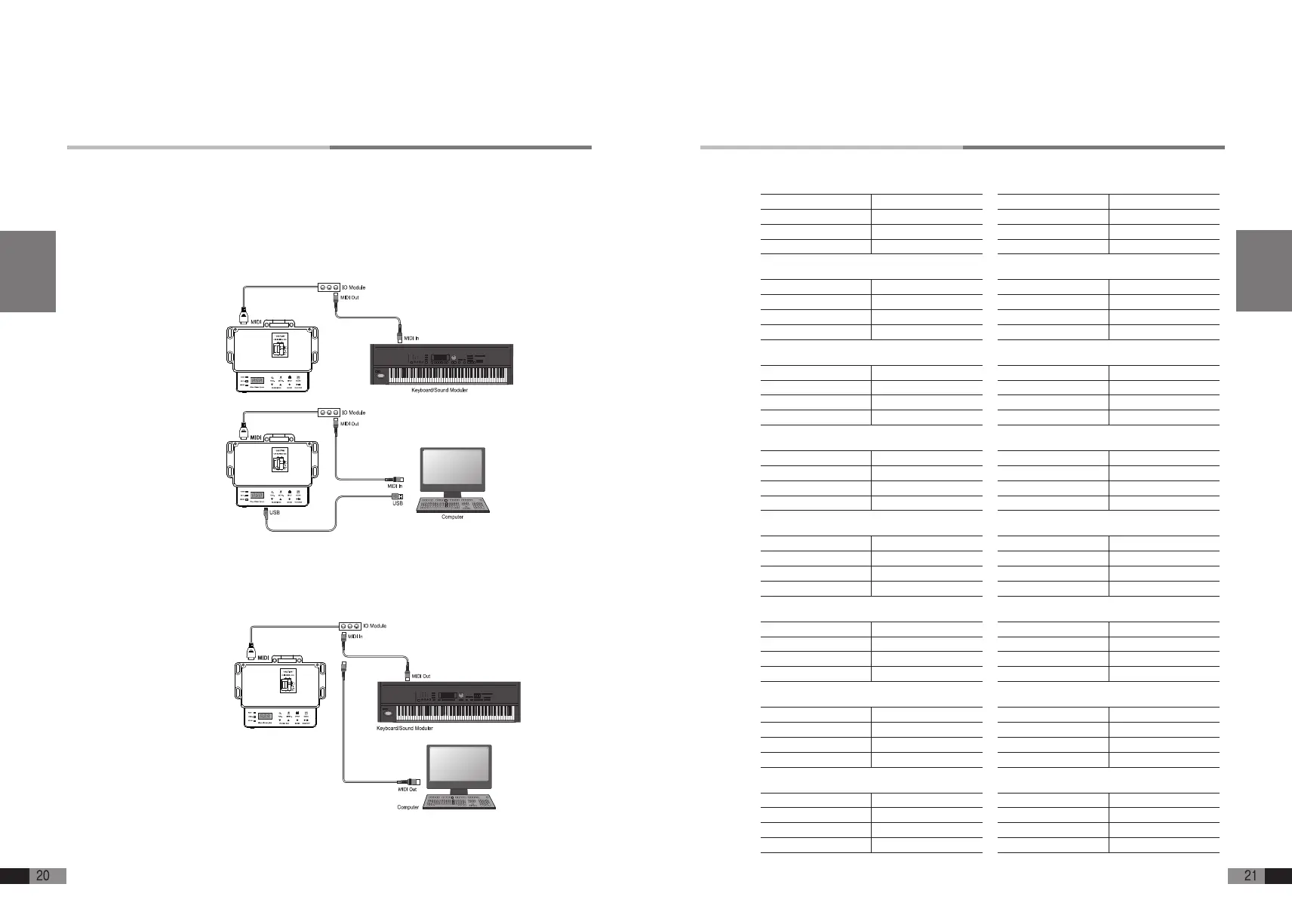 partir du MIDI IN de votre FEURICH BASIC au MIDI OUT de l’autre appareil MIDI.