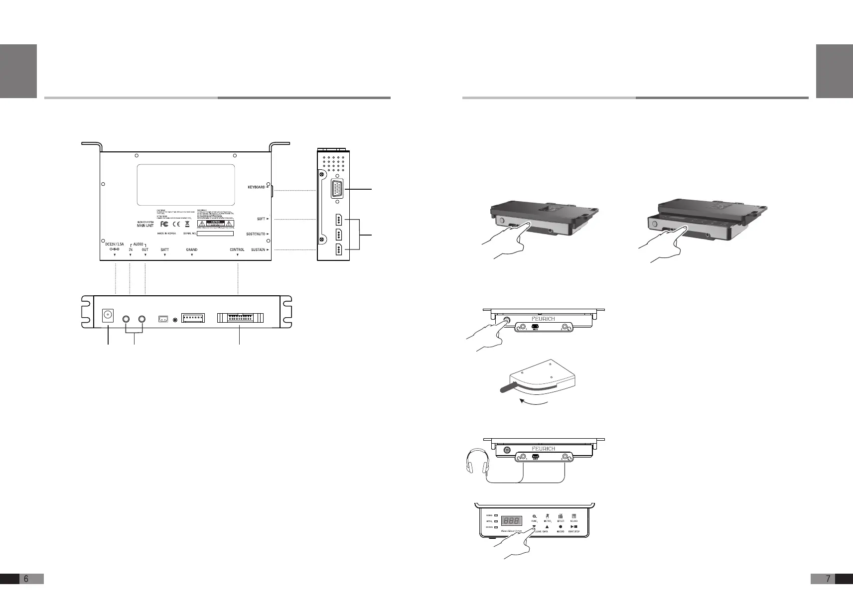 AUDIO IN/OUT: Connects to outer audio equipment in stereo