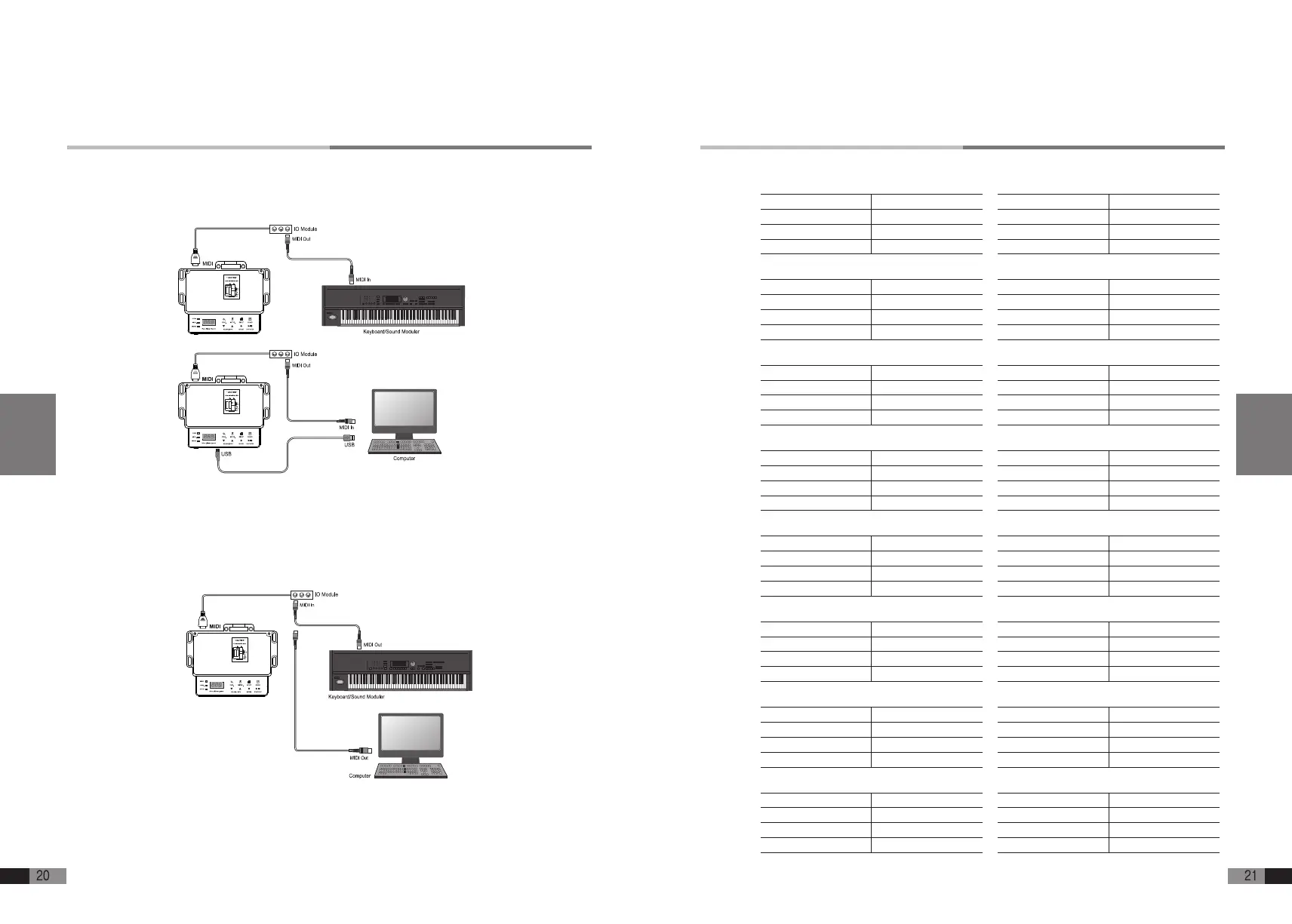 parámetros de conexión con los equipos MIDI externo deben tener en cuenta la lista de