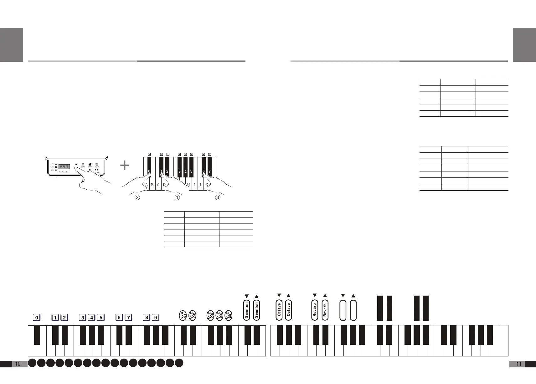 sounds. They all can be selected by using piano keys like the numeric keypad from 0 to 9 with the