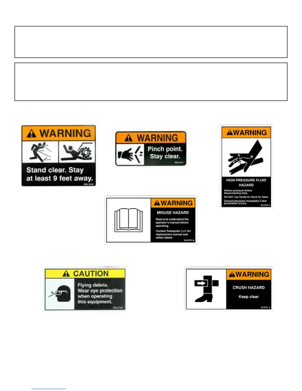 x Replacement parts for parts with safety signs attached must also have safety signs attached.
